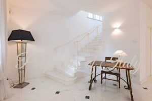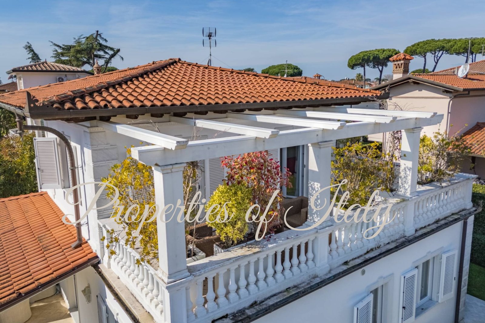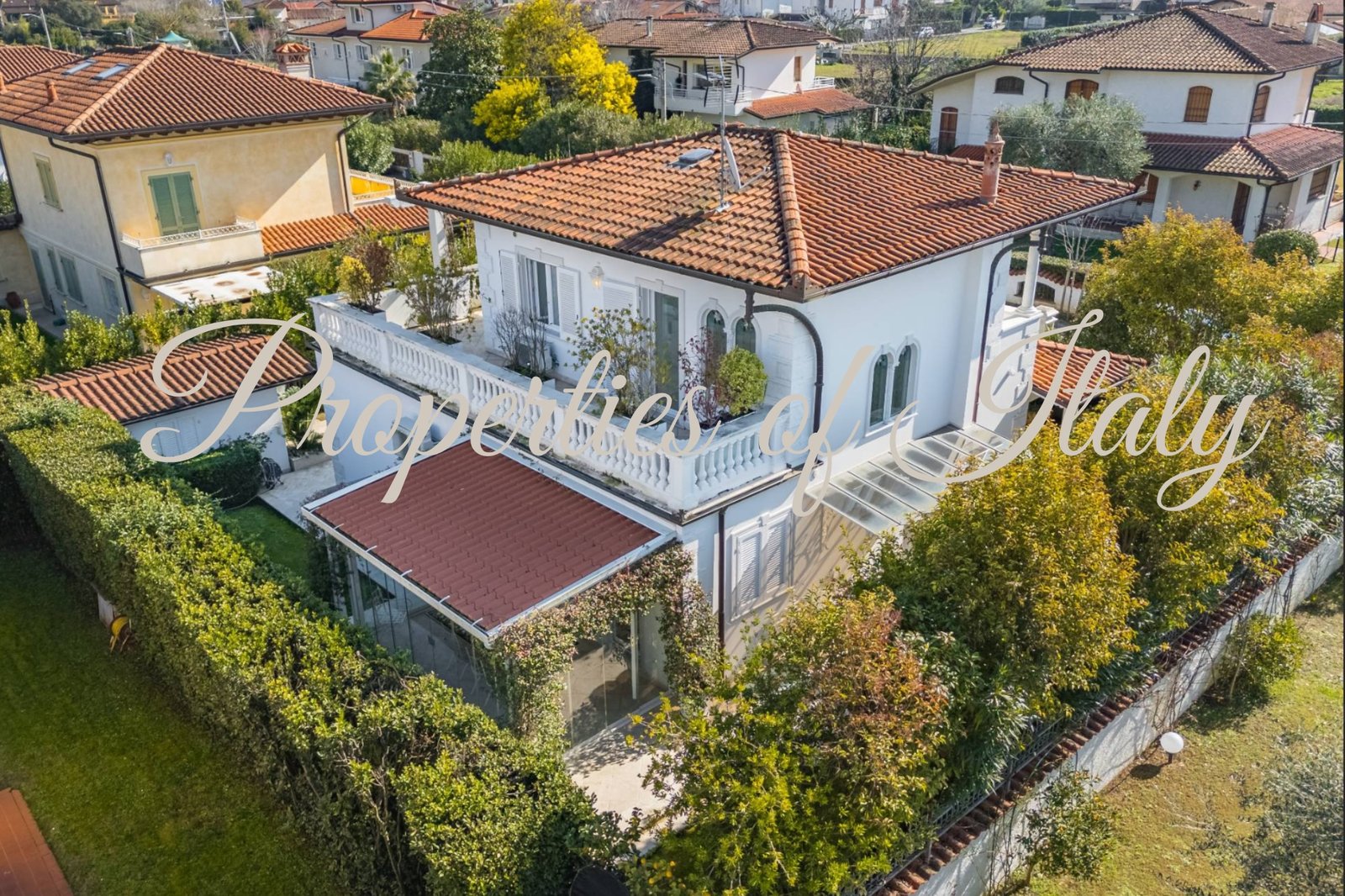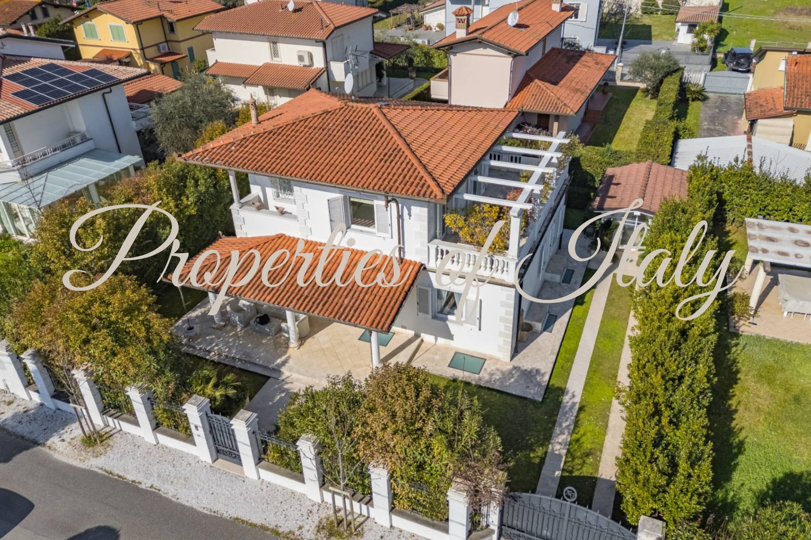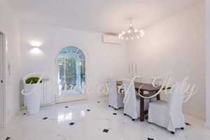 This stunning Liberty-style villa represents a refined and luminous retreat in Marina di Pietrasanta. Just over 1 km from the fine sandy beach and within easy reach of Forte dei Marmi, this fully renovated property offers a sophisticated living experience with luxury finishes and an exceptional layout. Right at the entrance, you are welcomed by a bright and spacious ambiance, where exquisite white marble flooring with contrasting dark green inlays enhances the sense of refinement. On the ground floor an expansive open-plan living and dining area flows seamlessly into a modern kitchen, which opens onto a charming covered portico—perfect for al fresco dining. A comfortable bedroom with an ensuite bathroom completes this level. On the first floor two luxurious bedrooms, each with a private bathroom, provide a serene retreat. Both rooms enjoy direct access to a breathtaking panoramic terrace, where you can unwind and soak in the beauty of the Versilia coast and Marina di Pietrasanta. With independent access from the garden, the basement features four spacious rooms illuminated by skylights. This versatile space offers excellent potential for conversion into an apartment with private access, home gym, spa, or entertainment area. The villa is embraced by a 360 sqm private garden, enclosed by lush Italian hedges for privacy and tranquility. The entrance, framed by an elegant covered portico, sets the stage for warm summer evenings spent in relaxation. An automatic gate ensures security, while a 10 sqm storage area provides space for garden essentials. Contact me for a private viewing.